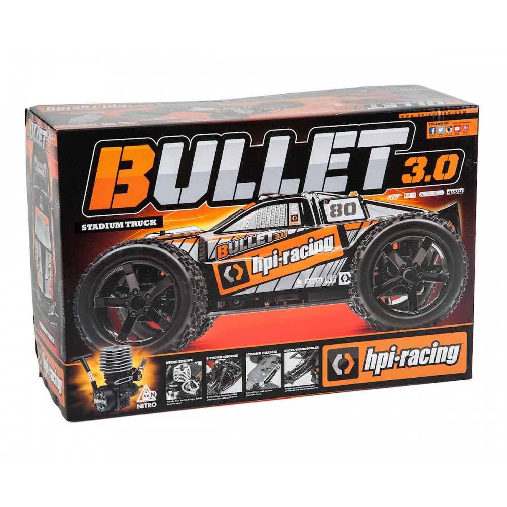 A Bullet é um modelo da HPI Racing muito popular, este foi renovado com uma nova carroçaria futurista, este super resistente monster truck proporciona grandes momentos de diversão.